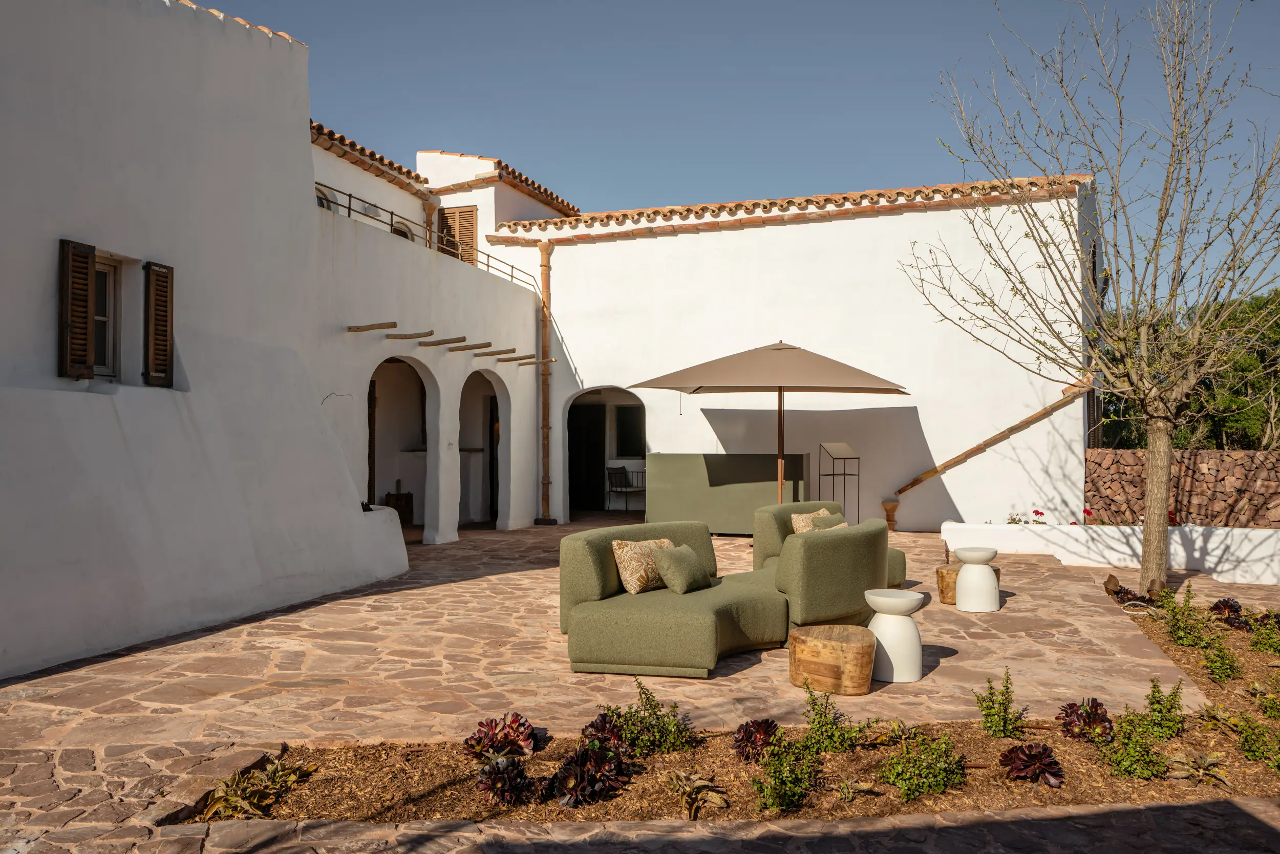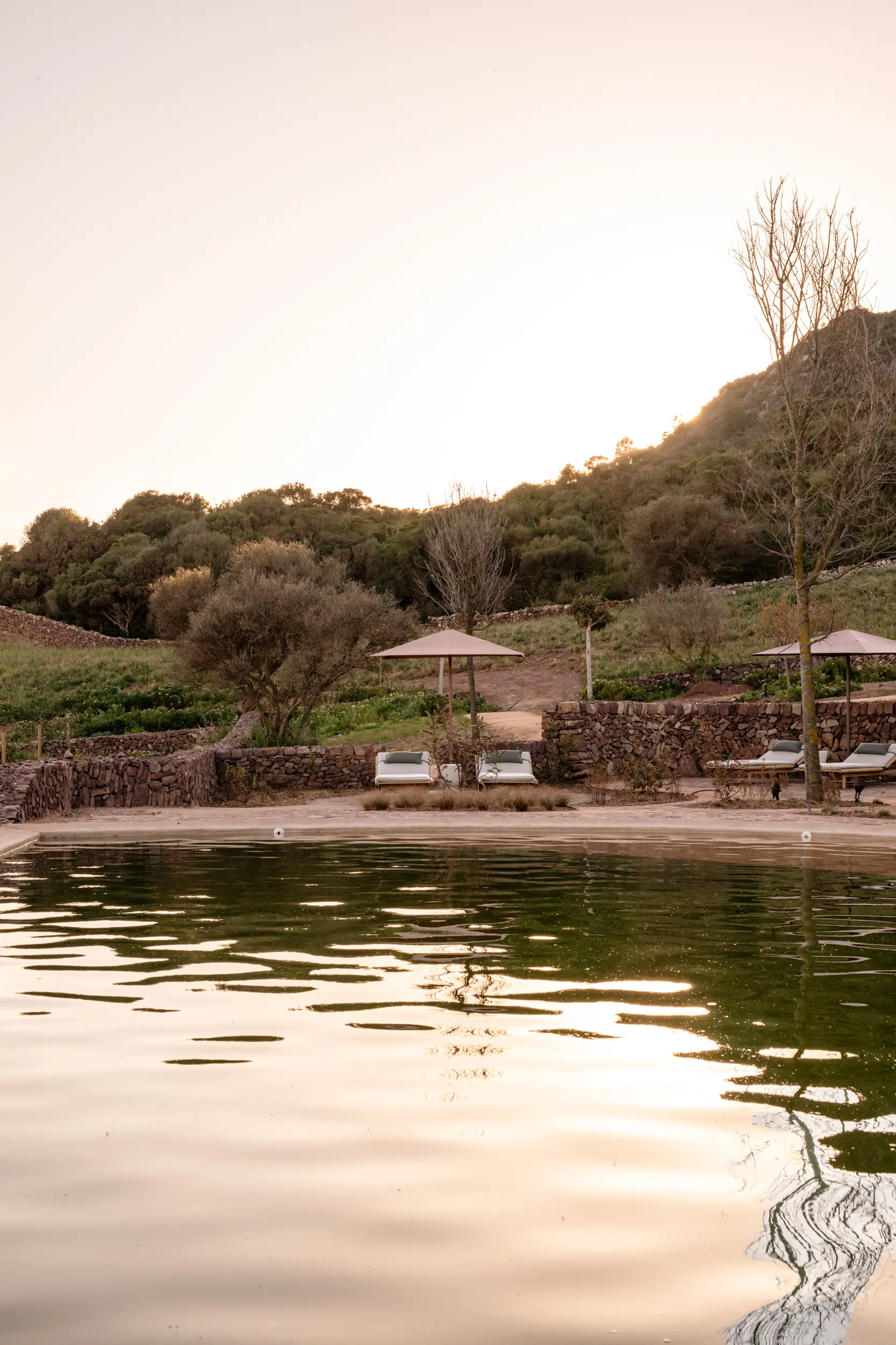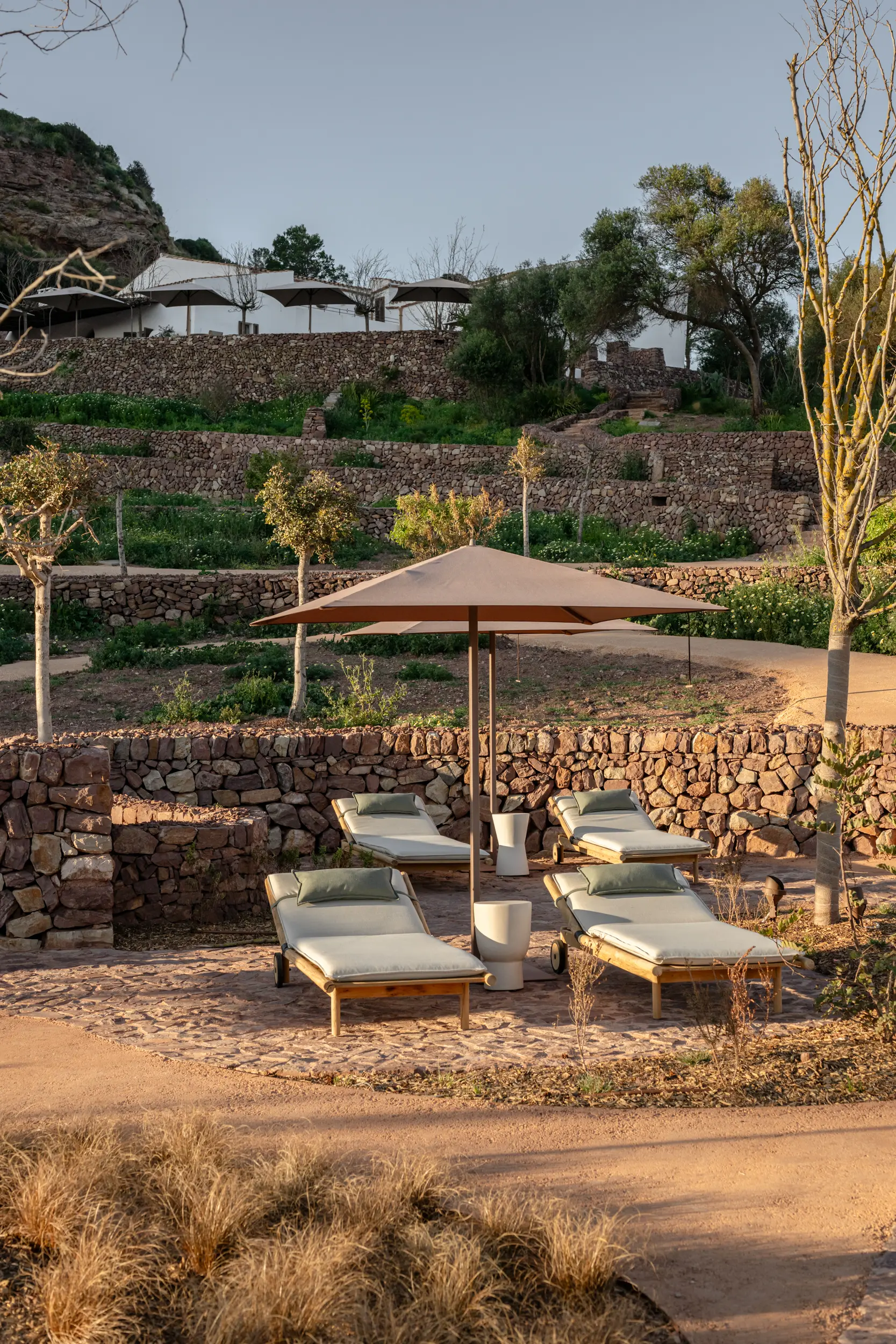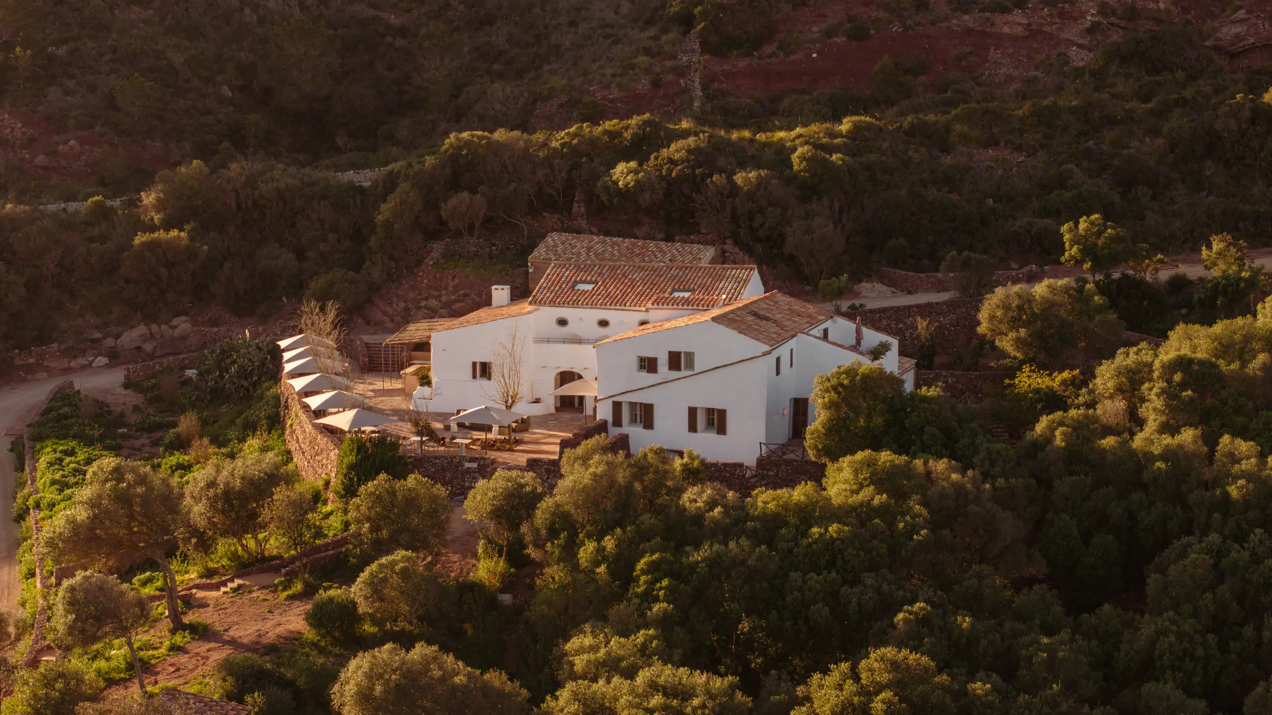 Within the sheltered valley, native planting, olive groves, and natural landscape have been thoughtfully reintroduced and protected, supporting biodiversity and allowing the land to recover its balance. Water-conscious irrigation and a restrained approach to development ensure the estate works in harmony with Menorca’s dry climate and delicate ecosystem.