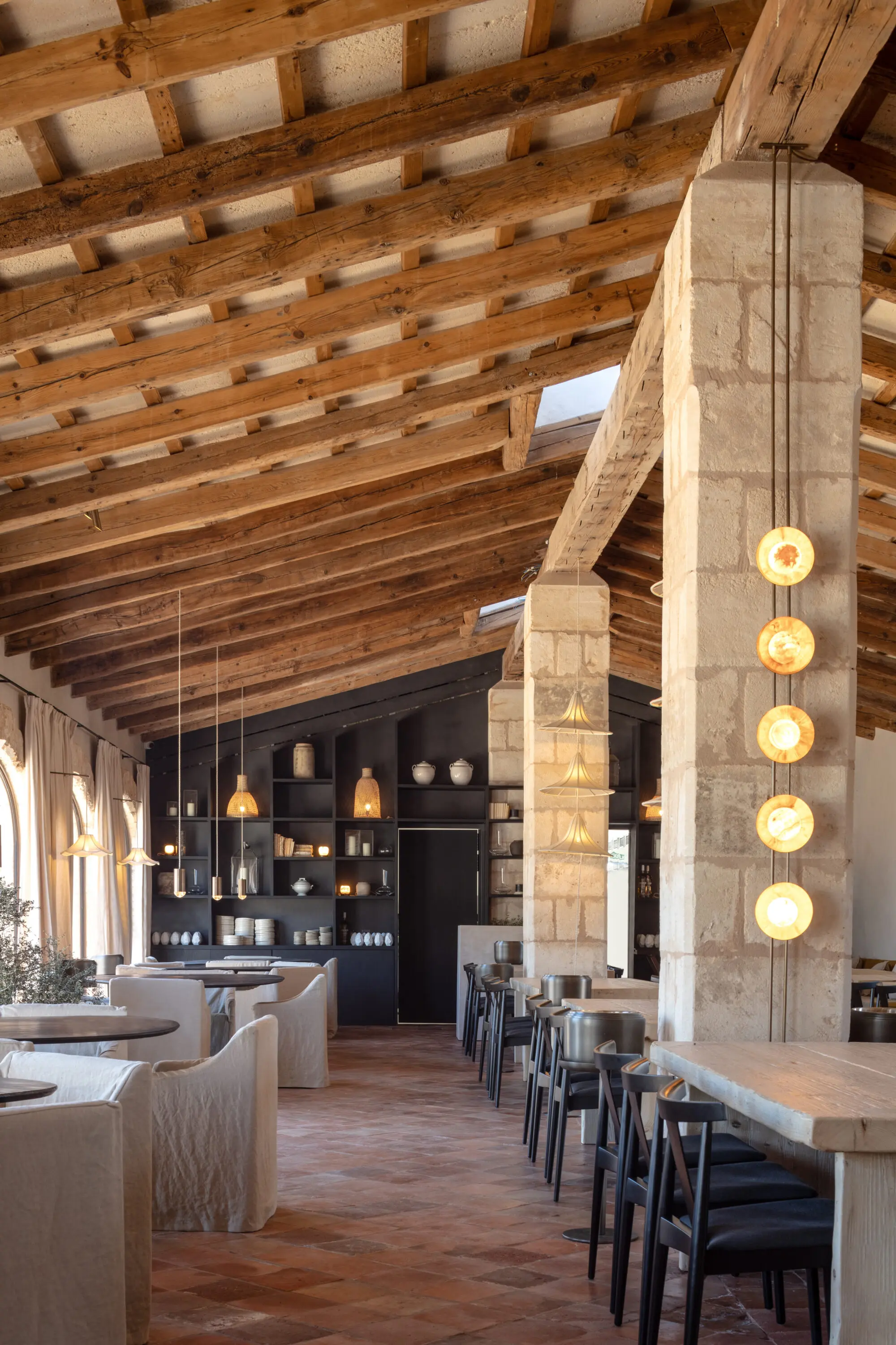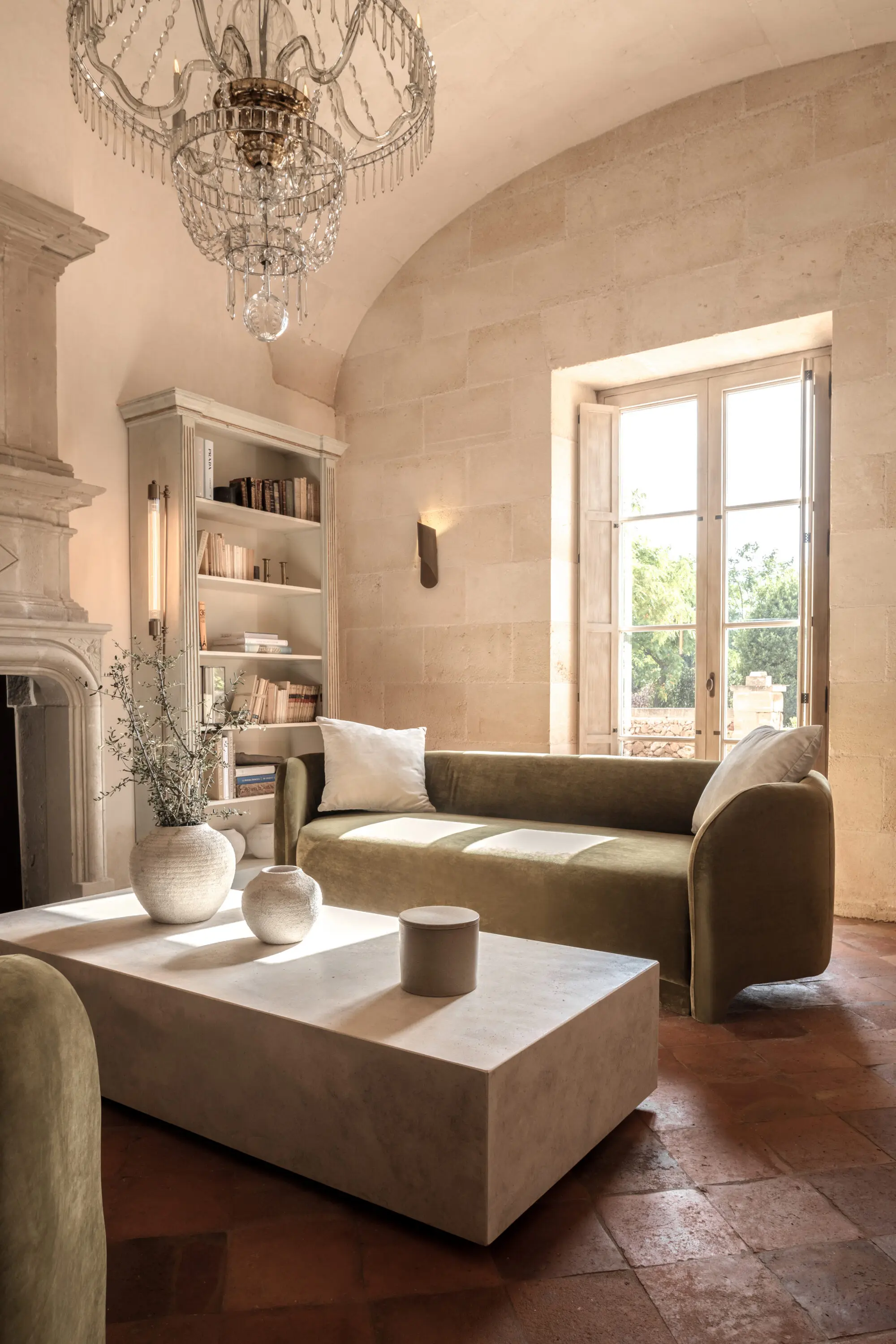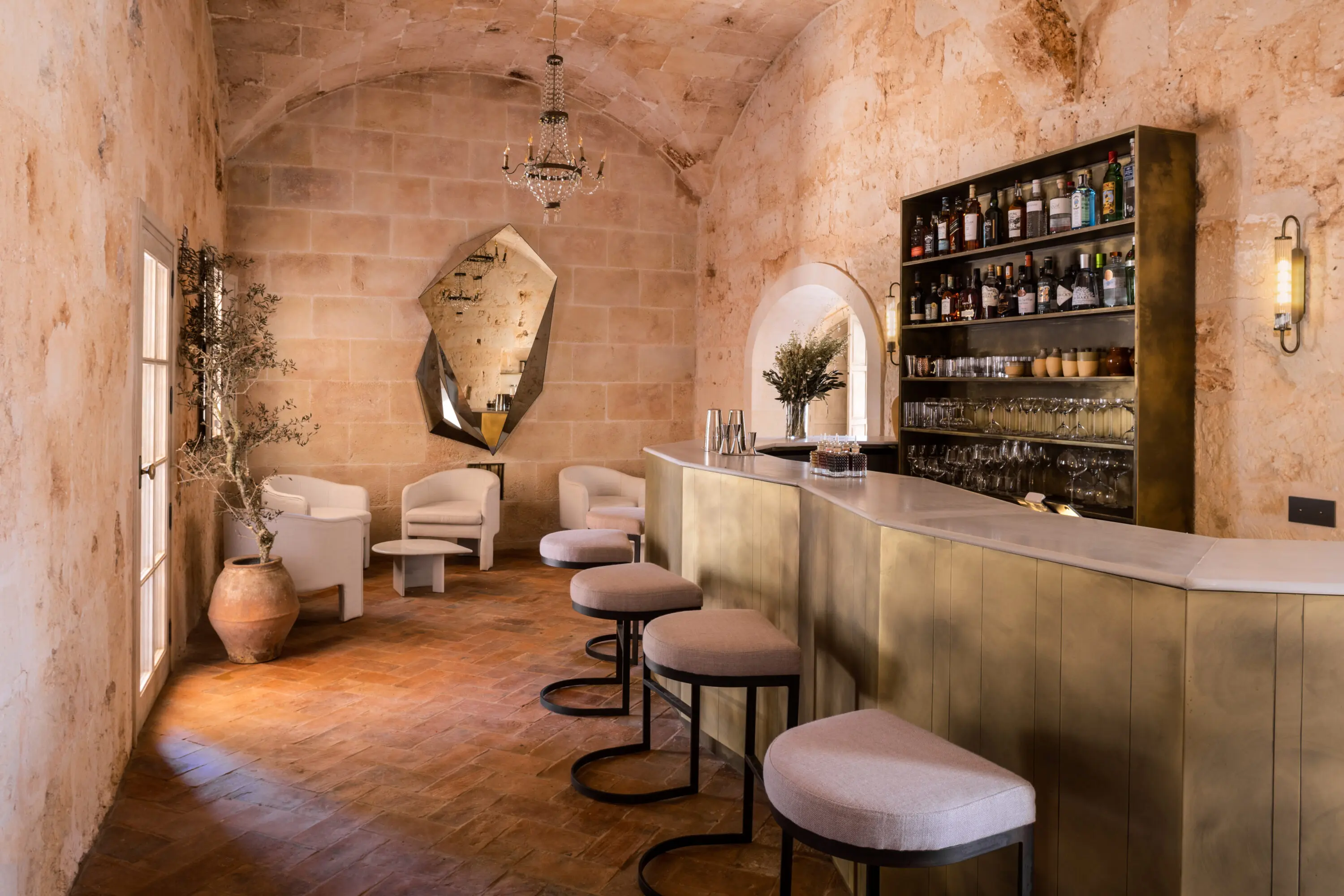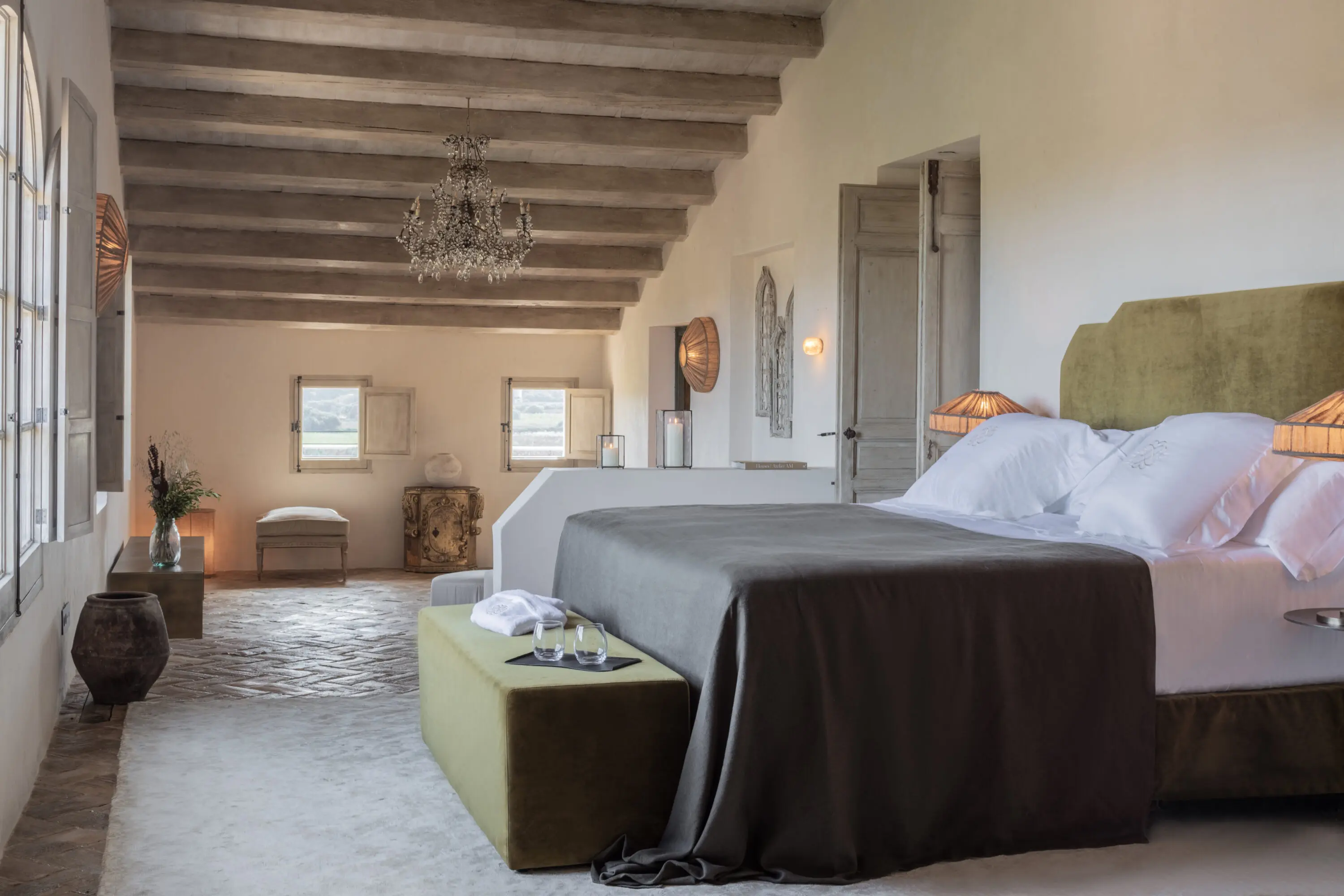 Centuries later, Vestige carefully restored the original manor and surrounding outbuildings, preserving pale stone facades, vaulted ceilings, shuttered windows, and the understated elegance of traditional Menorcan architecture. Today, natural materials, crafted furniture, and softly layered interiors bring warmth and calm without disturbing the soul of the estate.